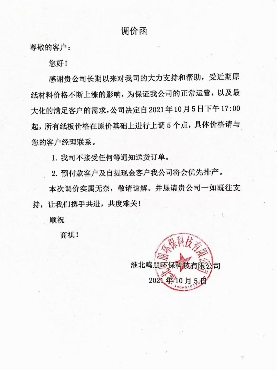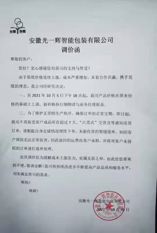 就不一一通知你們了,紙板漲價(jià),不是我們能決定的事情,只能說(shuō),有單早點(diǎn)下。